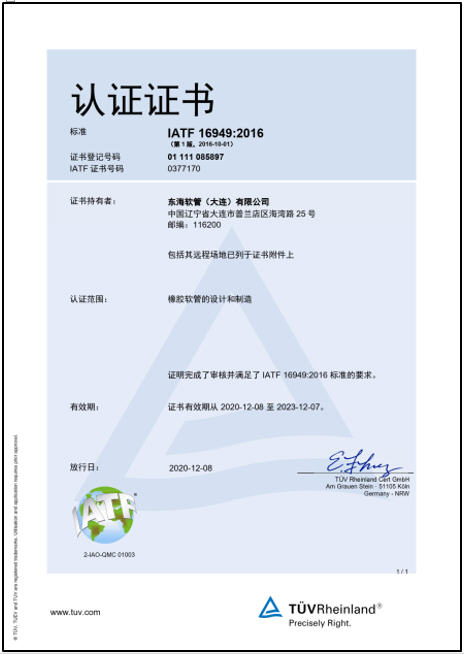 采用當今先進的質量管理手段,生產出一流的橡膠軟管產品。在生產經營活動中,秉承“信用確實、不趨浮利、萬事入精”的住友事業精神,以強化事業基盤管理、制造3本柱為基礎,不懈追求消除風險,推進技術革新,以滿足客戶需求,向客戶提供優良的產品和服務為宗旨,致力于成為被客戶信任與信賴的汽車零部件供應商。